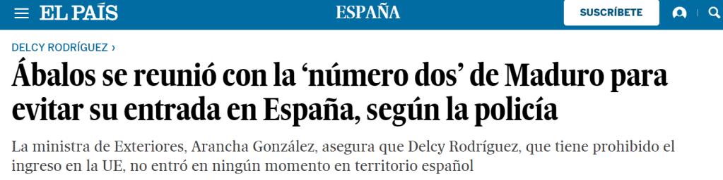 El País, contràriament, no ho va incloure com a notícia principal a la portada, sinó que ho va situar en un segon pla dins una notícia de Veneçuela i Guaidó. A la versió digital titulava que el ministre es va reunir amb Rodríguez per evitar que aquesta entrés a territori espanyol. A més, reforçava la seva informació afirmant la procedència de fonts policials i amb declaracions de la ministra d’Exteriors, Arancha González Laya. El diari posava èmfasis en el fet que la vicepresidenta no havia tocat territori espanyol i no tant amb la visita de Ábalos.